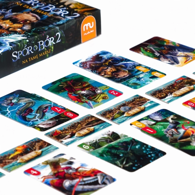 Spor o Bor 2: Na tamže pochod je napínavá kartová hra pre dvoch hráčov, v ktorej si užijete strategické myslenie a zdravú súťaživosť. Jeden hráč sa snaží poškodiť hrádze, zatiaľ čo druhý sa musí brániť útoku. Hra ponúka tri varianty: štandardnú, 'odvetu' s výmenou rolí a variantu s taktickými kartami pre skúsených hráčov.
