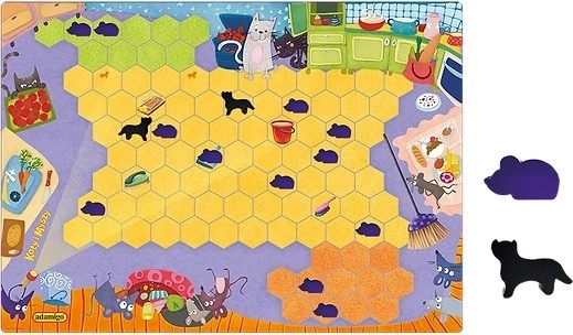 Pútavá rodinná hra Mačky a myši od ADAMIGO rozvíja logické myslenie, plánovanie a koncentráciu detí od 5 rokov. Jednoduché pravidlá a napínavý súboj medzi prefíkanými myškami a dvoma mačkami zaručujú rýchly štart a kopec zábavy pre celú rodinu.