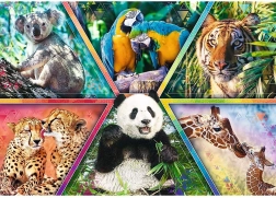 Táto 1000-dielna skladačka poteší milovníkov prírody aj skúsených puzzlistov. Koláž šiestich ikonických zvierat – koaly, ary, tigra, gepardov, pandy a žiráf – v živých farbách vytvára pútavú dekoráciu, ktorá rozjasní každý interiér.