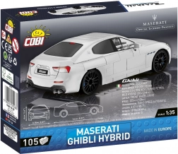 Postavte si ikonický sedan MASERATI Ghibli Hybrid v mierke 1:35 zo stavebnice COBI. Sada ponúka 105 dielikov, originálnu licenciu, pohyblivé kolesá s gumovými pneumatikami a precízne farebné potlače. Dieliky sú kompatibilné s inými stavebnicami a model je vyrobený v EÚ – skvelý pre deti aj dospelých zberateľov.