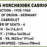 Táto realistická stavebnica zachytáva skrátenú verziu legendárneho vozidla HORCH 830BK, známeho svojou kvalitou a technickými inováciami. Špeciálne navrhnuté prvky pre modely vozidiel zabezpečujú verné proporcie a množstvo prekvapivých detailov. Trvalé potlače namiesto nálepiek dodávajú modelu špičkový vzhľad a odolnosť pri hraní.