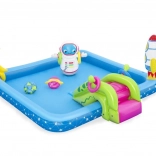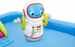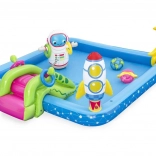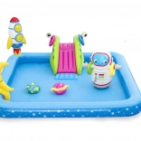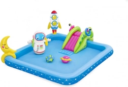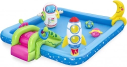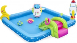 Nafukovacie vodné ihrisko Galaxia BESTWAY poskytuje nekonečné hodiny zábavy pre deti. Tento farebný bazénový set s vesmírnou tematikou zahŕňa zábavné prvky ako šmýkačku, sprinkler a hru na hádzanie kruhov, vyrobený z vysoko kvalitného PVC materiálu.