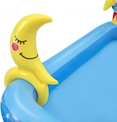 S nafukovacím vodným ihriskom Galaxia BESTWAY čakajú na deti interaktívne a dynamické zážitky plné zábavy. Tento kompaktný bazén ponúka rad atrakcií, ktoré podporujú kreatívnu hru a uľahčujú ochladenie počas letných dní. Farebné prvky a vesmírna tematika sú navrhnuté pre maximálnu radosť z hry.