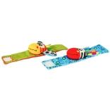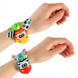 Roztomilé pásiky so zvieratkami zaujmú bábätko kontrastnými farbami a vzormi, hebkým textilom a rôznymi textúrami pre hmat. Každý pohyb ručičky odmení jemným zvukom chrastítka, ušká navyše ukrývajú šuchotavé fólie pre ďalšie zmyslové vnemy.