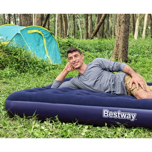 Odolný vinylový (PVC) materiál znesie časté používanie, zatiaľ čo praktické ventily na rýchle nafukovanie a vyfukovanie s blokáciou šetria čas pri stavaní aj balení. Rozmer 203 × 183 × 22 cm pohodlne pojme dve osoby, takže je ideálny do obývačky aj do stanu.