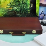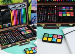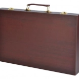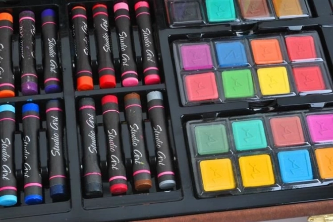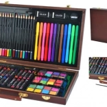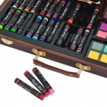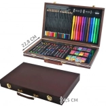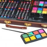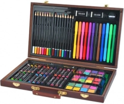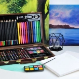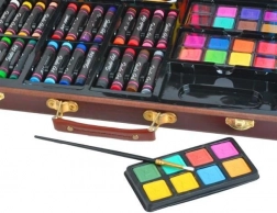 Všetky výtvarné potreby sú uhladne usporiadané v rozkladacom drevenom kufríku s priehradkami, takže máte vždy rýchly a jednoduchý prístup ku všetkému, čo potrebujete.