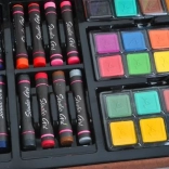 Táto univerzálna výtvarná sada prináša všetko, čo potrebujete na rozvoj kreativity – od skicovania až po akvarelovú maľbu. Všetko je uložené v odolnom drevenom kufríku s bezpečnými kovovými prackami a pohodlnou koženou rukoväťou na jednoduché prenášanie. Vďaka samostatným priehradkám máte každú pomôcku okamžite po ruke a v dokonalom poriadku.