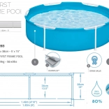 Bazén je vybavený stabilným, kovovým rámom, ktorý zabezpečuje primeranú pevnosť a trvácnosť celej konštrukcie. Steny sú vyrobené z trojvrstvového materiálu – spojenia odolného polyesteru a PVC, ktoré chráni pred poškodením.