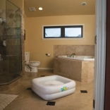 Integrované nafukovacie dno poskytuje deťom pohodlie pri sedení aj hraní a zároveň pomáha znižovať riziko pošmyknutia počas kúpeľa či špliechania.