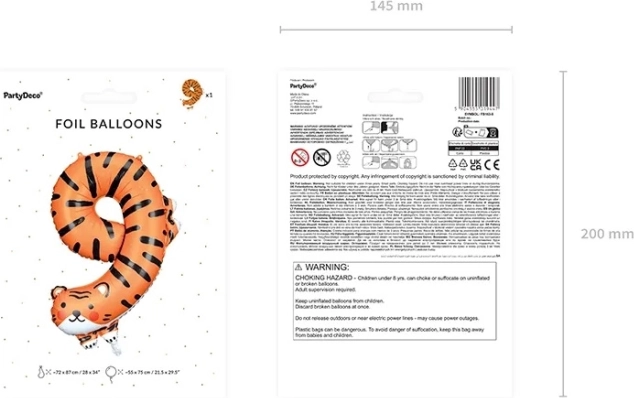 Spestrite narodeninovú oslavu štýlovým fóliovým balónikom v tvare čísla 9 s motívom tigra. Balón je vhodný na plnenie héliom aj vzduchom, po nafúknutí má približne 49 × 76 cm a v balení nájdete aj slamku na jednoduché nafúknutie.