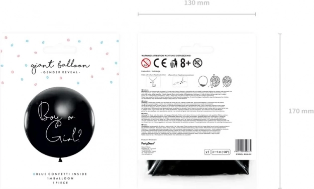 Plánujete gender reveal párty? Tento čierny balónik s bielym nápisom „Boy or Girl“ je naplnený modrým konfeti, ktoré pri prasknutí vytvorí krásny vizuálny efekt a okamžite prezradí, že čakáte chlapčeka.