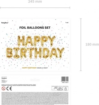 Tento impozantný fóliový balón, dlhý 340 cm a vysoký 35 cm, je ideálnym doplnkom pre všetky narodeninové párty. Jeho zlatá farba dodáva lesk a eleganciu každej oslave: