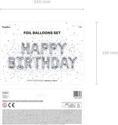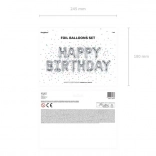 Štýlová sada fóliových balónikov s nápisom HAPPY BIRTHDAY v elegantnej striebornej farbe. Ideálne na narodeninové oslavy, jednoduché nafukovanie a výrazný metalický efekt dodajú vašej výzdobe profesionálny vzhľad.