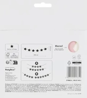 Rozmery samotného banera sú 290 × 16,5 cm, balenie má rozmery 180 × 200 mm. Kombinujte s ďalšími pastelovými dekoráciami pre dokonalý vzhľad celej oslavy.