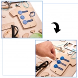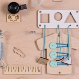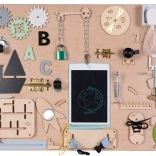 Hra na tabuli rozvíja jemnú motoriku a koordináciu očí a rúk pomocou rôznorodých pohybových úloh, ako je šnurovanie alebo manipulácia s kolieskami.