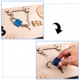 Vďaka rôznorodým prvkom, ako sú prepínače, zipsy a ďalšie, poskytuje drevená manipulačná tabula deťom bezpečné prostredie pre poznávanie a učenie. Malé deti môžu bezpečne manipulovať s každodennými objektmi, ako je zásuvka s konektorom alebo vypínač, a zároveň rozvíjať svoje manuálne zručnosti.