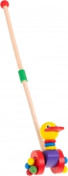 Táto farebná drevená kačička je ideálnou spoločníčkou na prechádzky. Je navrhnutá tak, aby podporovala detskú motoriku a pohyb. Vďaka jednoducho ovládateľnej drevenej tyči môže byť kačička vedená alebo sa s ňou deti môžu hrať samostatne.
