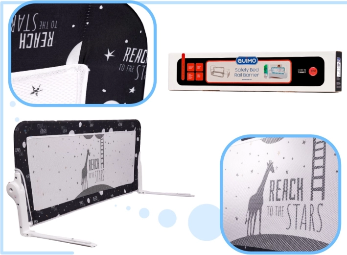 Inštalácia je rýchla: stačí vložiť rám do textilného návleku, zasunúť podperné nohy pod matrac a je hotovo – bez vŕtania a náradia. Vďaka skladacím pántom zábranu ľahko sklopíte pod úroveň matraca pre pohodlné ustlanie alebo uloženie. Priedušná sieťka je príjemná na dotyk a zároveň bezpečne chráni pred pádom.