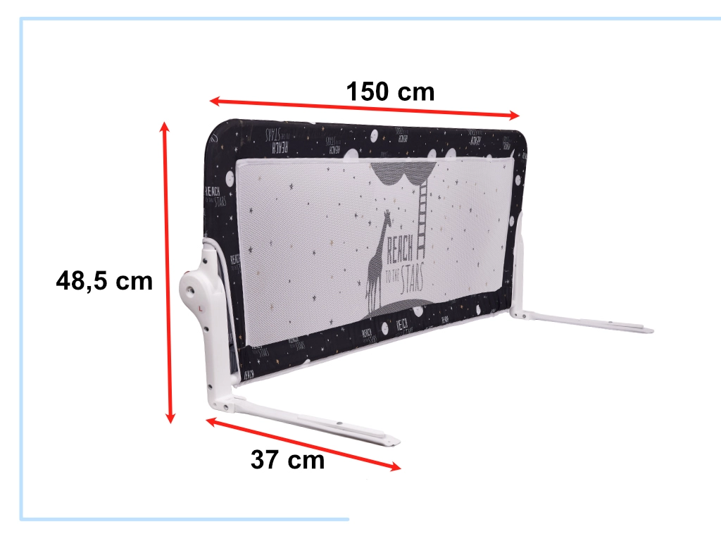 Praktická detská zábrana na posteľ s dĺžkou 150 cm so sklopným mechanizmom zaistí, aby sa dieťa v noci neprekotilo z postele. Vďaka pevnej kovovej konštrukcii, odolným plastovým spojom a priedušnej sieťke ponúka spoľahlivú ochranu, jednoduchú montáž bez vŕtania a pohodlné sklápanie jedným stlačením tlačidiel.