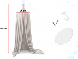 Sivý závesný baldachýn je krásny doplnok do detskej izby, ktorý dodá interiéru pohodlie, súkromie a čarovnú atmosféru. Vďaka mäkkému splývavému materiálu sa skvele hodí nad postieľku, hraciu matrac alebo do čitateľského kútika.