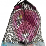 Vstavaný šnorchel so suchým systémom „dry-top“ obmedzuje vnikanie vody zhora. Maska sa ľahko prispôsobí tvaru tváre vďaka mäkkému silikónovému tesneniu a nastaviteľným popruhom. Súčasťou balenia sú štupľe do uší a držiak pre akčnú kameru (napr. GO PRO), aby ste mohli zachytiť svoje najlepšie okamihy pod hladinou. Praktické sieťované vrecko uľahčuje prenášanie a skladovanie.