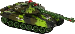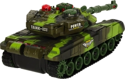 Pásový podvozok s mäkkými gumovými pásmi zabezpečuje dobrú trakciu, otočná veža sa otáča až o 300° a infračervené delo umožňuje bezpečnú streľbu na krátku vzdialenosť. Efektné LED osvetlenie a bohaté zvukové efekty motora, dela a guľometu umocnia atmosféru skutočného bojiska. Kvalitný plast a precízne spracovanie vydržia mesiace zábavy.