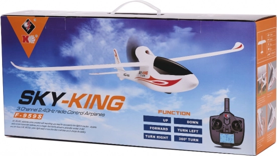 Motorový klzák Sky King F959S od WLtoys je skvelou voľbou pre tých, ktorí si chcú kúpiť model pripravený na zábavu ihneď po vybratí z krabice. Akrobacia na plný plyn a kaskadérske kúsky vo vzduchu sú skvelým spôsobom, ako si užiť zábavu vonku, ideálne pre každého, kto s leteckým modelárstvom začína.