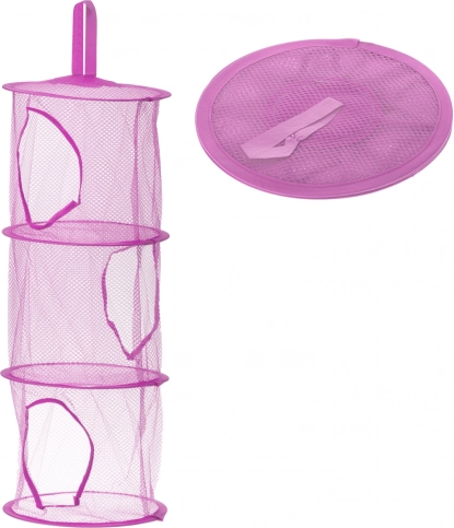 Univerzálny trojúrovňový závesný organizér na všetky druhy príslušenstva/hračiek. Závesný kôš je vyrobený z veľmi pružnej sieťoviny a je mimoriadne ľahký.