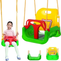 Univerzálna detská hojdačka 3 v 1 na záhradu, terasu aj do domu. Vďaka modulárnej konštrukcii rastie s dieťaťom – od bezpečného sedadla pre batoľatá po klasickú hojdačku pre staršie deti. Odolný plast, silné laná, bezpečnostný oblúk a nastaviteľná výška zaistia pohodlnú a bezpečnú zábavu každý deň.