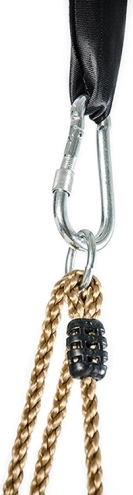Pevná karabína a splietané lano zabezpečujú spoľahlivé uchytenie aj pri intenzívnom používaní. Maximálna nosnosť 75 kg.