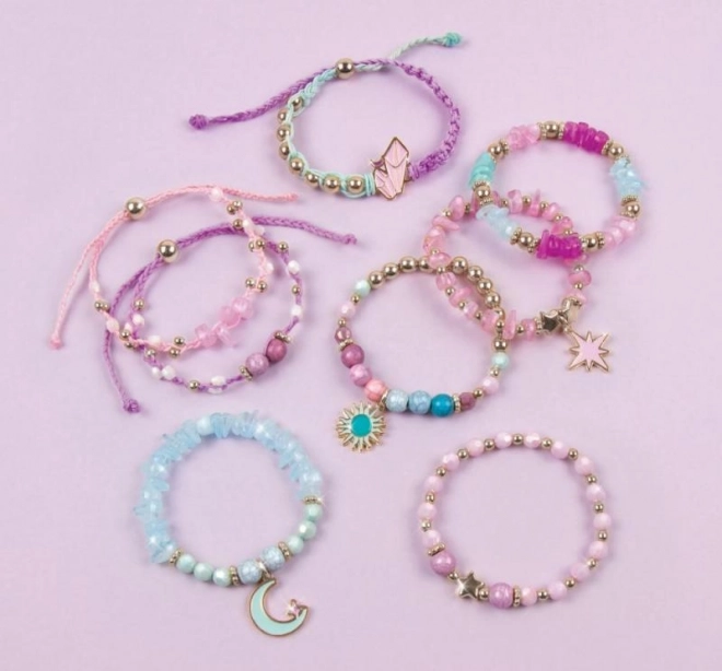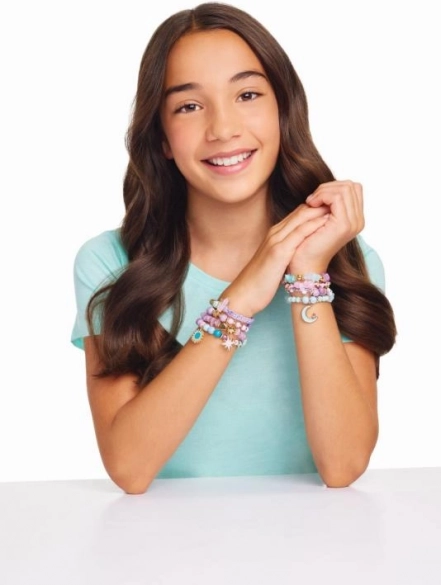 Vytvorte čarovné náramky inšpirované oblohou a hviezdami. Sada Make It Real Celestial Stones obsahuje bohatý výber korálikov, perličiek a príveskov, vďaka ktorým deti ľahko vytvoria náramky podľa svojej fantázie. Ideálna na spoločné tvorenie s kamarátmi či ako kreatívny darček.