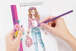 Dizajnérske portfólio s motívom kvetov ponúka deťom možnosť rozvíjať kreativitu s viac než 120 šablónami a nálepkami, ideálne pre mladých dizajnérov.