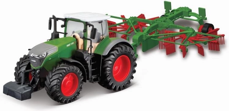 Model poľnohospodárskeho traktora Bburago Farm Traktor Fendt 1050 Vario so zhrňovačom (obracač krmovín) vyrobený z kovových a plastových dielov vychádza z predlohy traktora, ktorý je vrcholovým radom 1000 Vario.