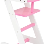 Táto jedálenská stolička je perfektným doplnkom pre bábiky, ktoré chcú sedieť ako skutočné deti. Jedálenská stolička má jednoduchý a čistý dizajn obohatený o ružové prvky, ktoré zaujmú každé dievčatko. Vďaka stabilnej konštrukcii je zaistené, že stolička poskytuje dostatočnú oporu.