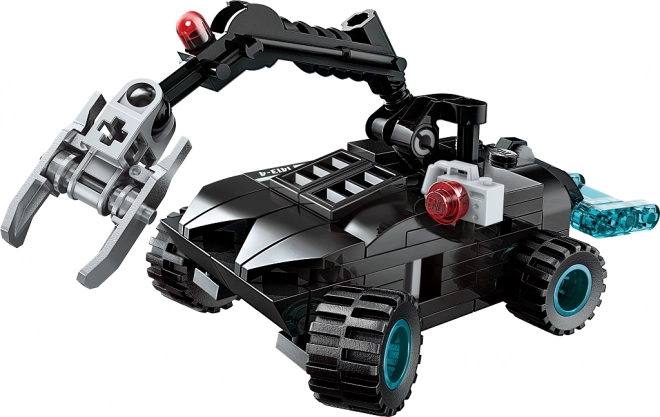 Z jednotlivých ministavebníc zložíte ucelený, detailný model s funkčnými prvkami – kolesá, veža, ramená a zbrane pre akčné scenáre.