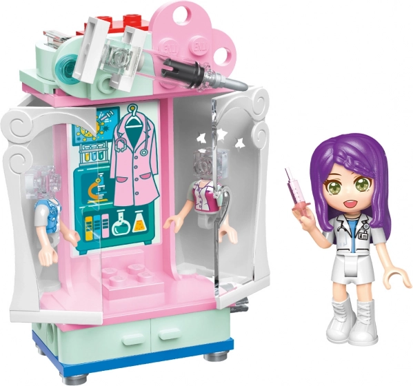 Vstúpte do sveta fantázie s elegantnou šatníkovou skriňou doktorky, kde nechýba lekárske vybavenie, testovacie prístroje a štýlové doplnky. Deti si užijú kreatívne prezliekanie a scenky z ambulancie, zatiaľ čo si precvičia jemnú motoriku a sociálne zručnosti.