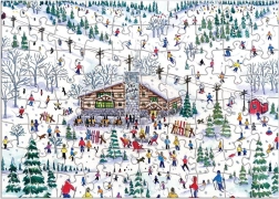 Oceňovaný dizajnér zachytáva sviatočnú atmosféru v pestrých scénach – od zimných dediniek až po rušné mestá s vianočnou výzdobou.