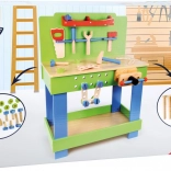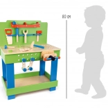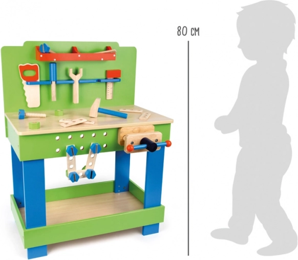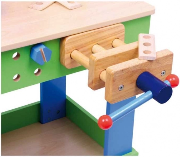 Pracovný stôl je pevne pripevnený a obsahuje skrutkovú svorku pre zaistenie obrobkov. Deti môžu trénovať zručnosti ako je zatĺkanie, skrutkovanie, meranie a rezanie.