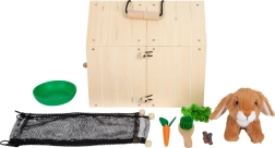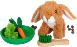 Súčasťou je plyšový králik a praktické doplnky: metlička, miska, drevená mrkva, kúsok šalátu a plstené „bobky“ pre autentické scénky starostlivosti. Set je ideálnou alternatívou pre deti, ktoré si zatiaľ nemôžu zaobstarať skutočného miláčika, a pomáha im rozvíjať sociálne a emocionálne zručnosti.