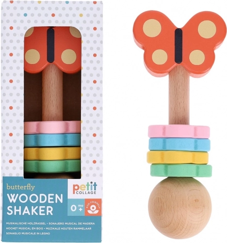 Jemné a farebné hrkálko Motýľ od značky Petit Collage je ideálny spoločník pre najmenších. Pri jemnom trasení vydáva príjemné zvuky, ktoré pomáhajú s rozvojom sluchového vnímania a rytmu.