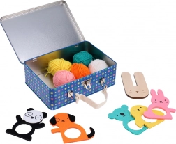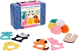 Kreatívna sada obsahuje päť farebných priadzí, päť plstených zvieratiek a drevený bambulkovač, všetko potrebné na výrobu vlastných bambulkových kamarátov.