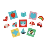 Ilustrované karty a plstené dieliky vedú deti k priraďovaniu motívov, rozvoju jemnej motoriky a posilneniu sústredenia. Ideálna prvá didaktická hra pre predškolákov.