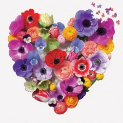 Elegantná kvetinová koláž zložená do tvaru srdca zmení každé skladanie na vizuálny zážitok. Kvalitná tlač s nezávadnými farbami, matný povrch a hladká zadná strana zabezpečujú komfortnú manipuláciu a perfektnú čitateľnosť detailov.