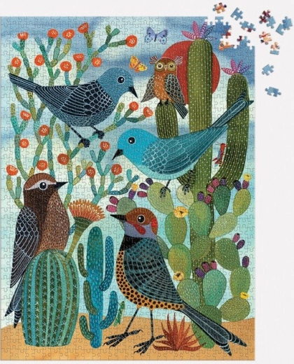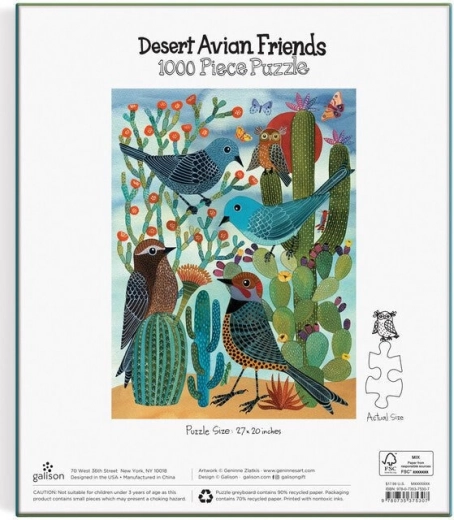 Objavte krásu slnečnej púšte v originálnom puzzle s motívmi vtákov od umelkyne Geninne Zlatkis. 1000 precízne vyrezaných dielikov, matná povrchová úprava pre verné farby, ekologické materiály s FSC certifikáciou a pevná, znovupoužiteľná krabica robia z tohto puzzle skvelý darček aj radosť pre celú rodinu.
