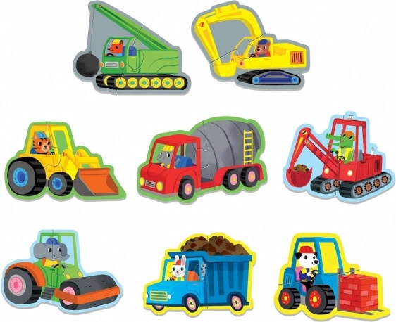 - 8 obrázkov stavebných strojov – jednoduché 2-dielne puzzle