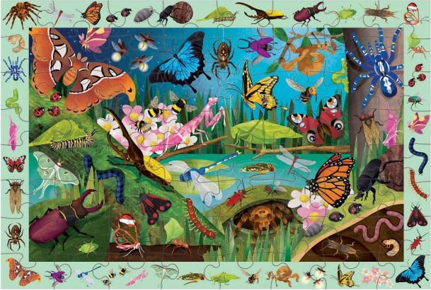 Po poskladaní puzzle deti preskúmajú rámček a nájdu viac než 40 druhov hmyzu – perfektný tréning pozornosti a sústredenia.