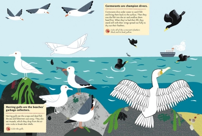 Táto kreatívna kniha aktivít deťom priblíži život na pobreží formou lepenia, kreslenia a vyfarbovania. Ideálna ako príprava na dovolenku pri mori alebo ako zábavný sprievodca prírodou pre všetkých malých nadšencov.