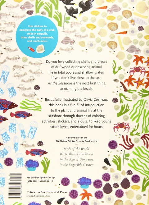 Objavte svet pobrežia s kreatívnou knihou aktivít, ktorá deťom ponúkne 120 samolepiek, 24 zábavných úloh a kvíz na záver. Vďaka krásnym ilustráciám od Olivia Cosneau sa malí bádatelia naučia spoznávať rastliny a živočíchy žijúce na pláži a strávia hodiny zmysluplnou zábavou. Kniha je v anglickom jazyku.