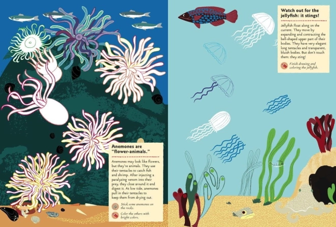 - 24 aktivít vrátane vyfarbovania medúz a sasanky, doplnenia tela kraba či kreslenia mušlí, tŕstia a hviezdic