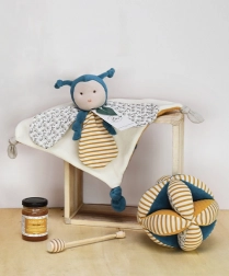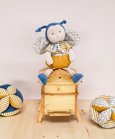 Textilná aktívna lopta Včielka je perfektná hračka pre malé deti. Jeho mäkká textúra zaujme deti a podporuje hmatovú stimuláciu a jednoduché uchopenie. Táto lopta obsahuje integrovanú hrkálku, ktorá upúta pozornosť a prispieva k rozvoju sluchu.